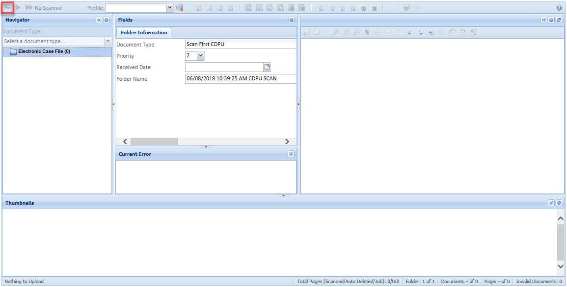 | From the Work Queue page, click Electronic Case Files > Scan | Click image for larger view