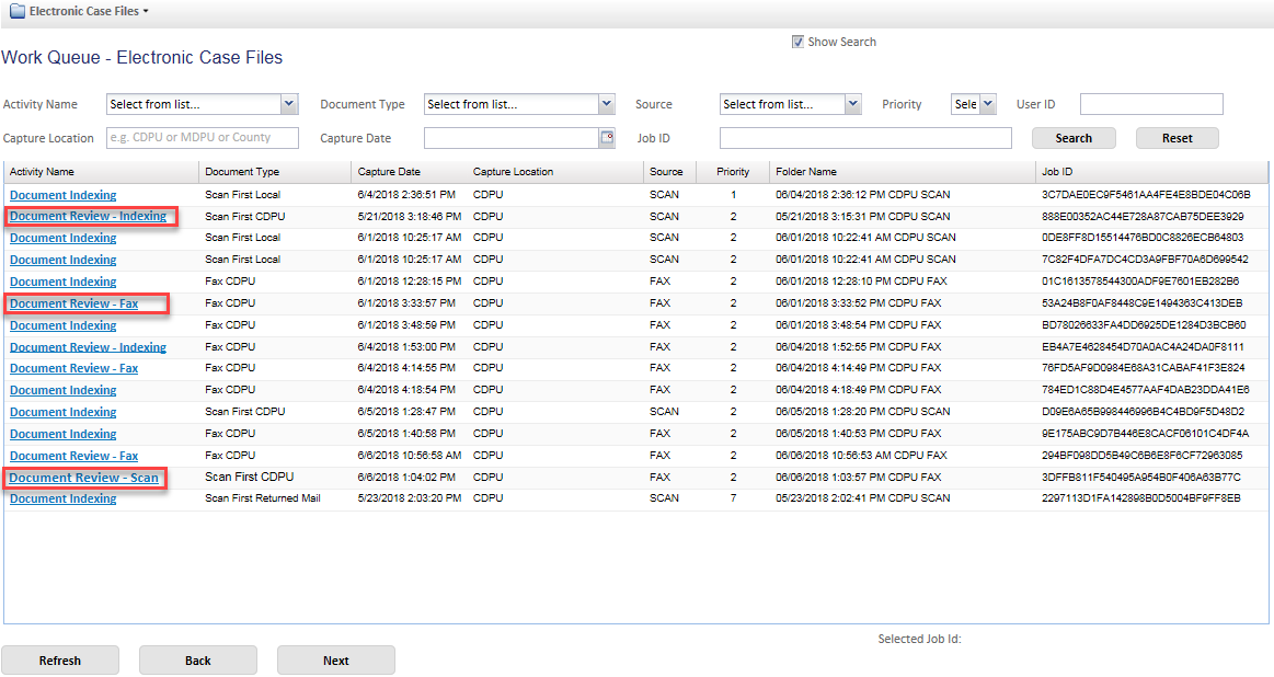 the bottom document(s) to merge in the Electronic Case Files folder.